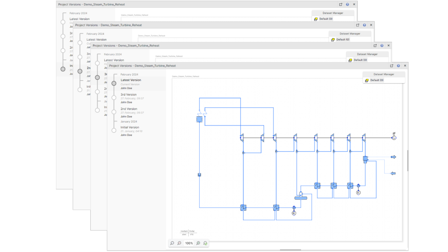 Are you tired of managing multiple project versions in separate files? IPSE GO automatically creates incremental project versions for you when saving. Use the project version window to visualize the different versions that are already saved. This streamlined approach is ideal for managing projects that involve power plant optimization or energy system models, ensuring that every modification is meticulously recorded and easily accessible.