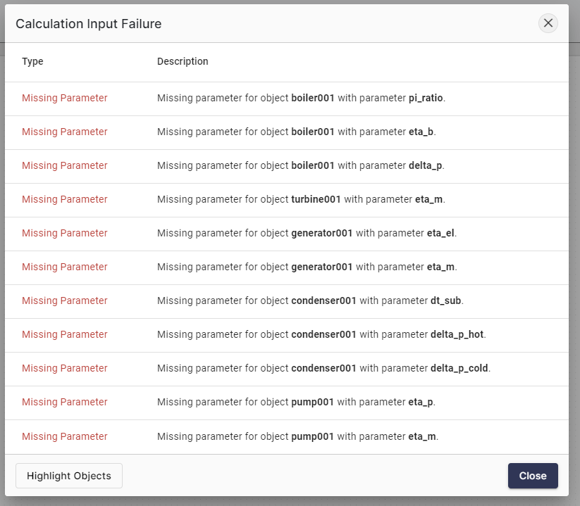 IPSE GO has detected that we did not provide data for every parameter. Parameters are numerical values that always must be defined. In the error message we can see which parameters have not been defined.