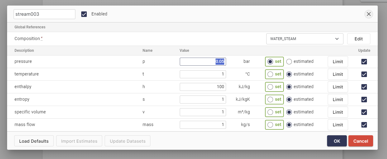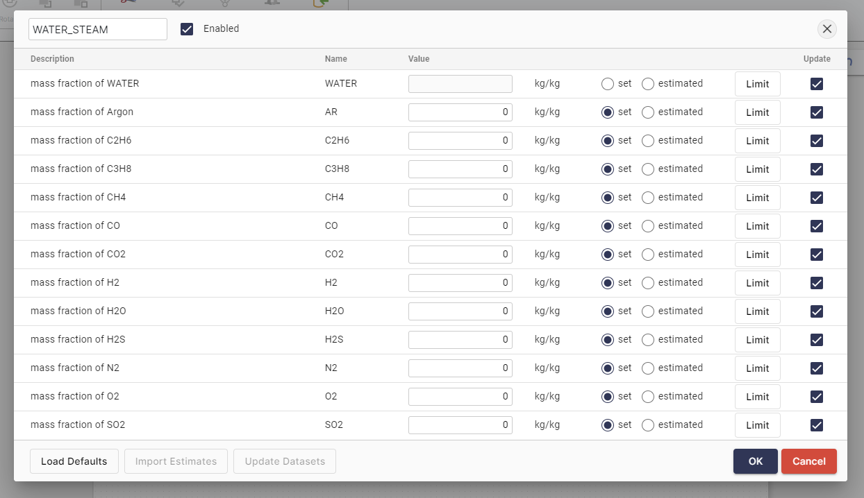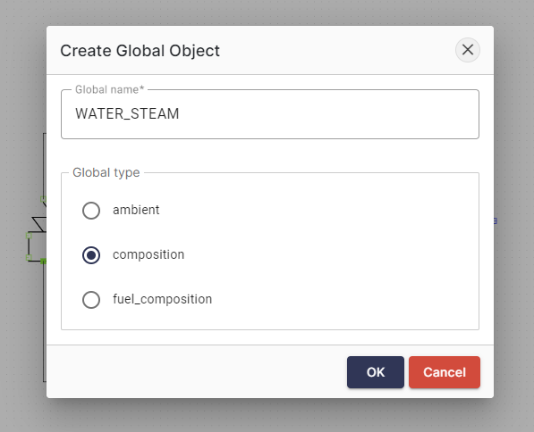 - We select "Composition" as the global object type and enter "WATER_STEAM" as the name.