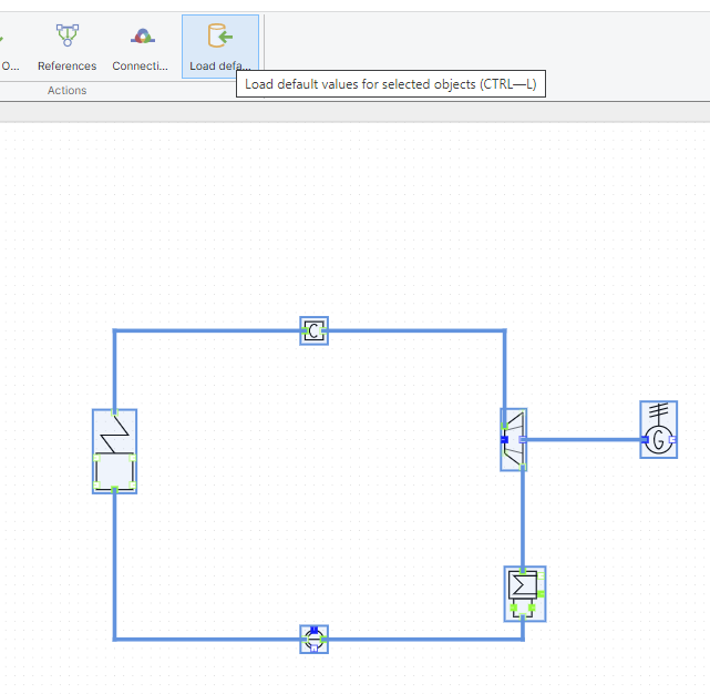 - We select Objects › Load Default Values for all objects. IPSE GO opens a window where we can choose if we want to overwrite existing values.