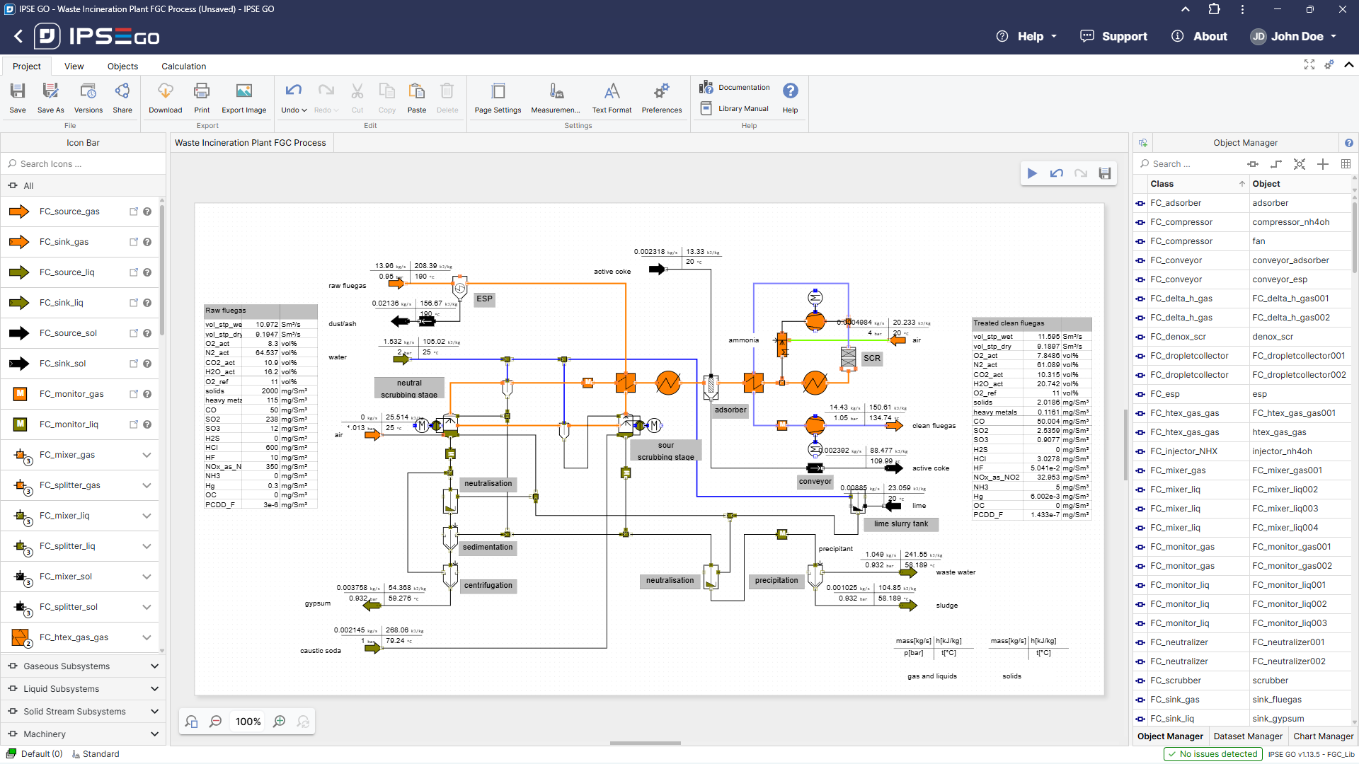 The Flue Gas Cleaning Library (FGC_lib) is an IPSEpro model library for modeling Flue Gas Cleaning systems by solving the steady state mass and energy balances.